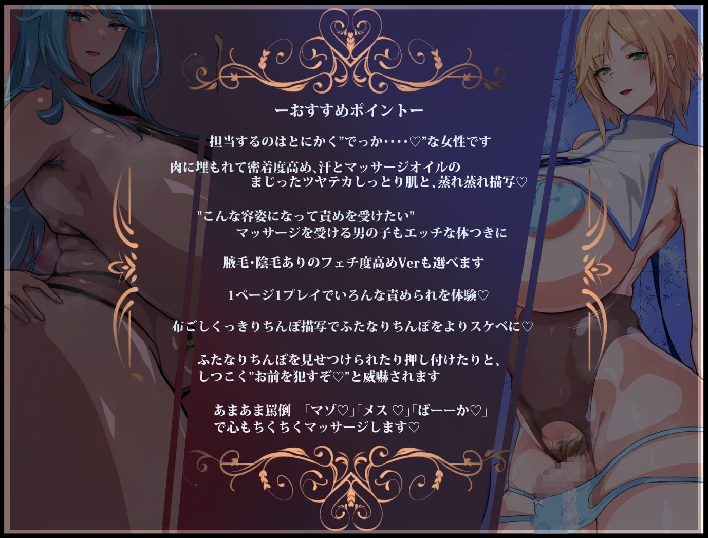 ジャンル:風俗/ソープ, おねショタ, 言葉責め, 逆レ, 男性受け, 陰毛/腋毛, フタナリ, ムチムチ