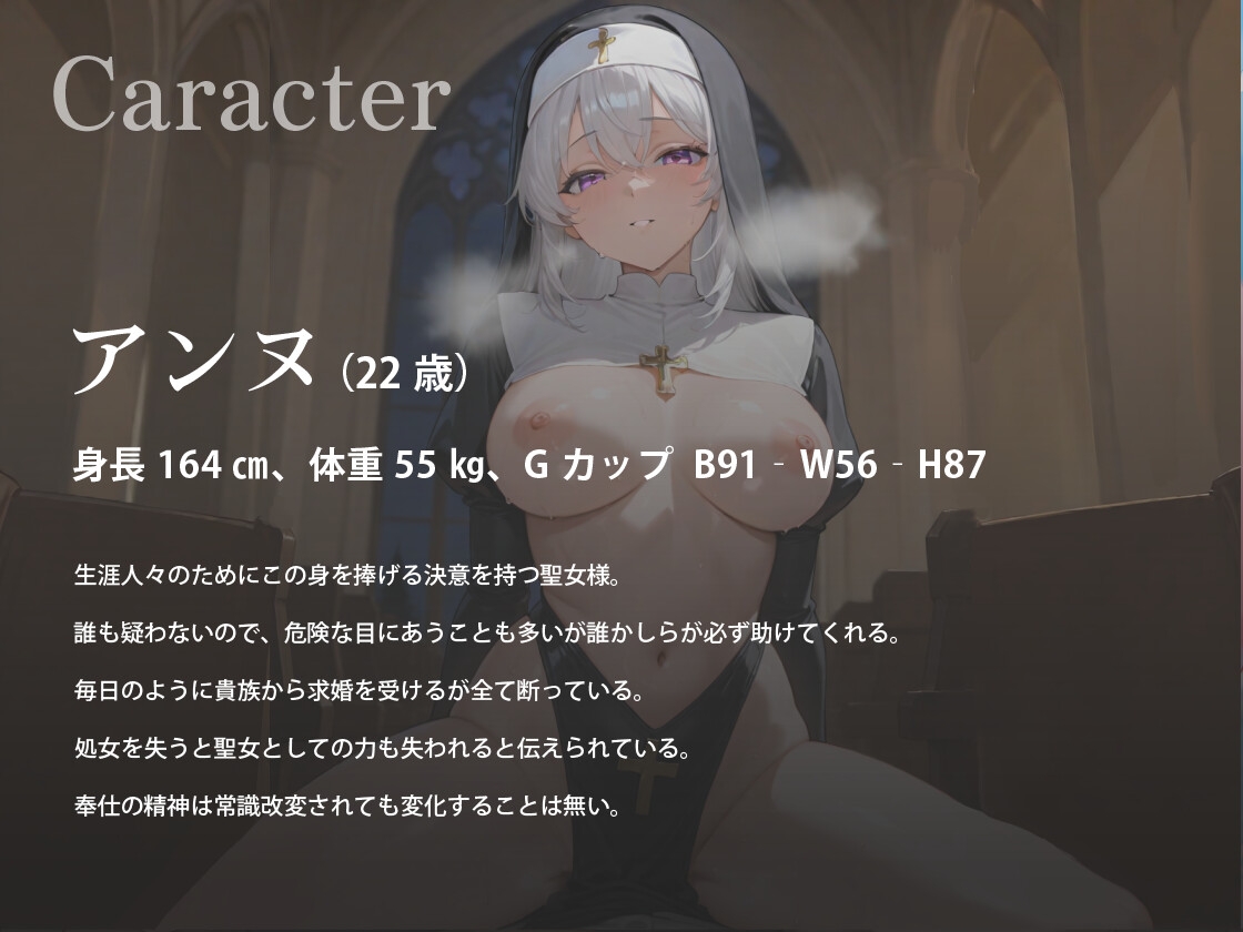 本作は当サークルの大ヒットASMR「常識改変された清廉潔白な聖女様のオホ声絶頂セックス~信奉するのは女神ではなくオチンポです~」のノベル版として制作しました。