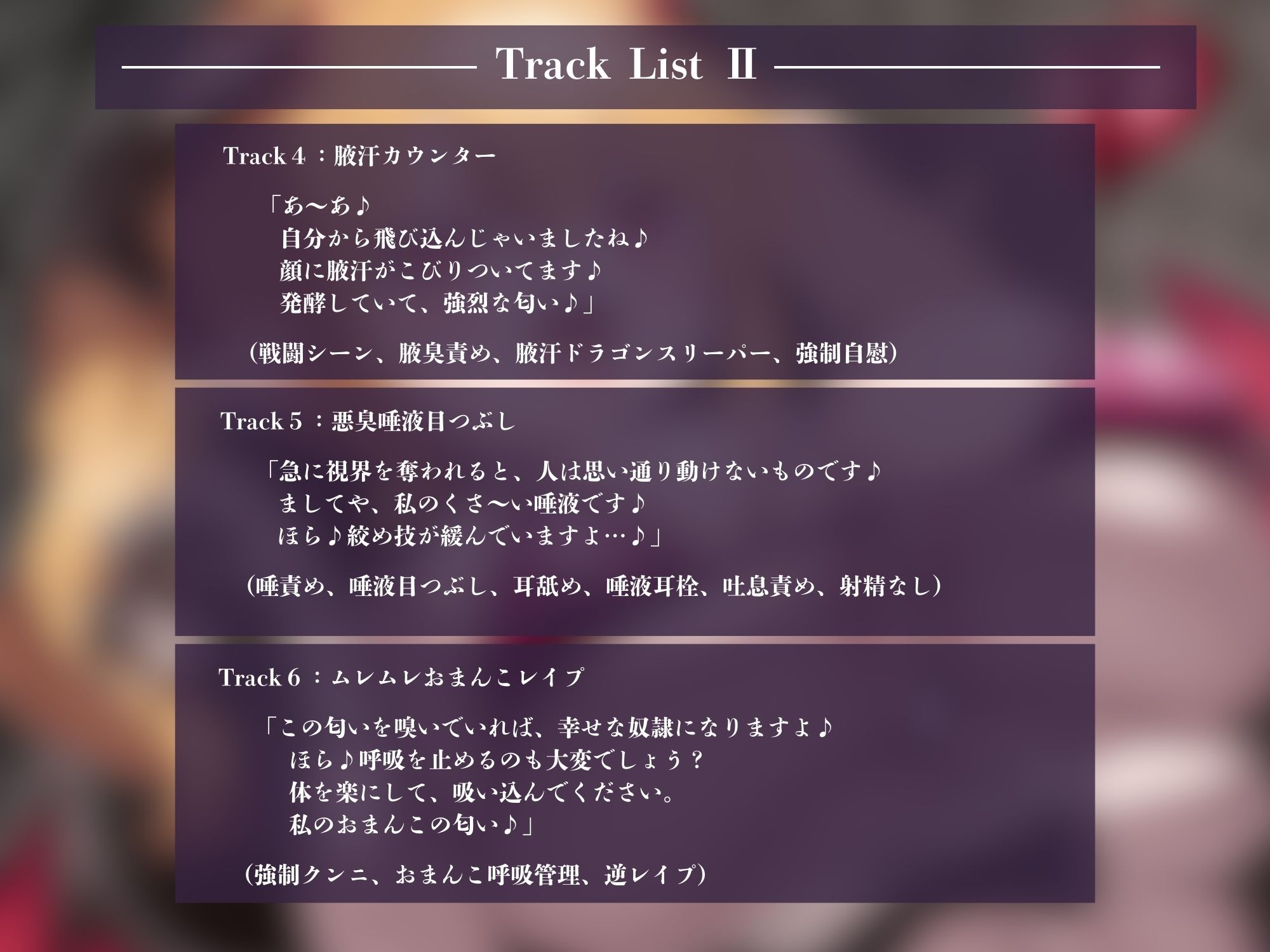 (唾責め、唾液目つぶし、耳舐め、唾液耳栓、吐息責め、射精なし)